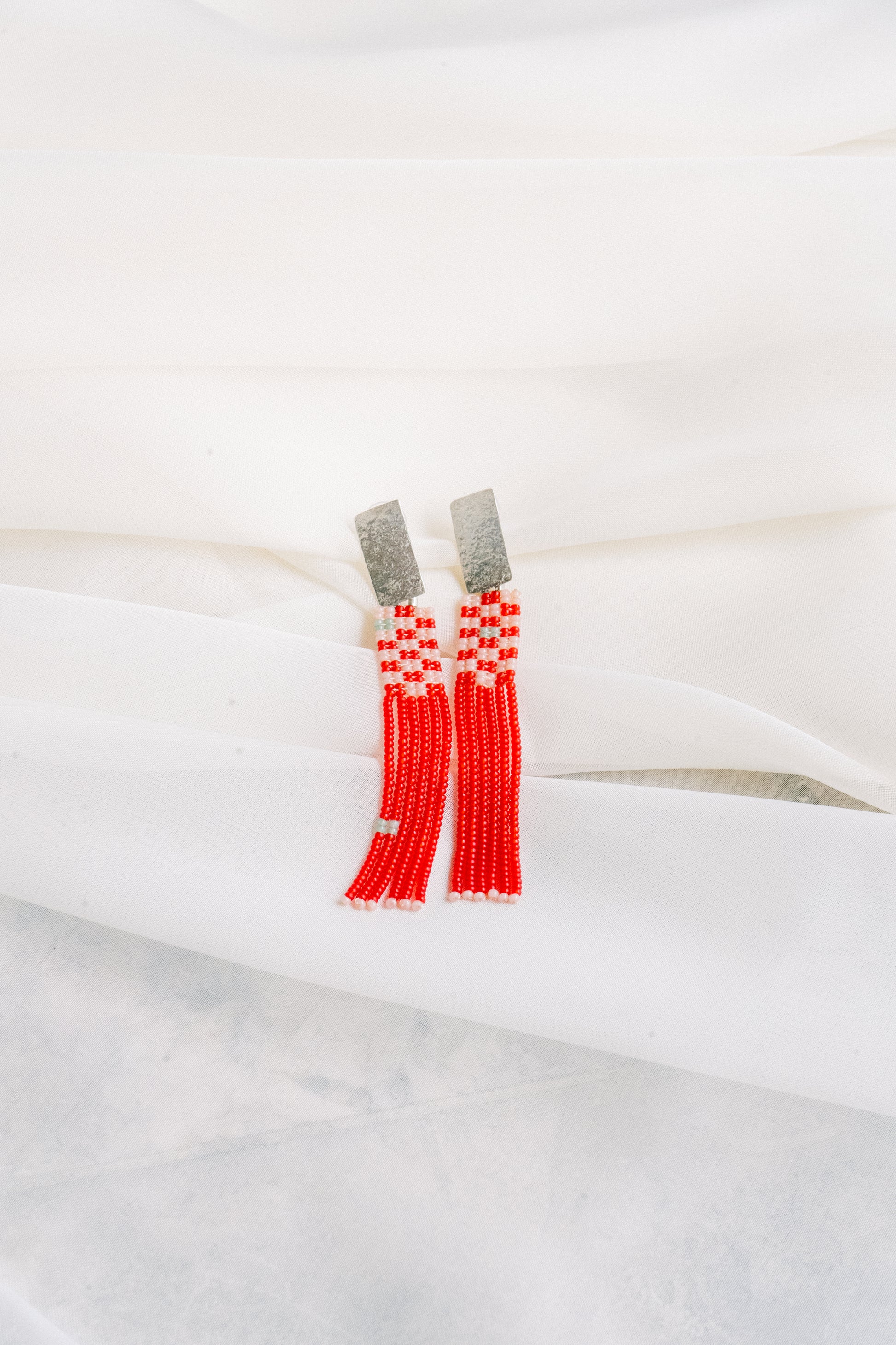 Con un diseño contemporáneo y siguiendo técnicas tradicionales de tejido sudamericano, estos aretes son ligeros y versátiles.
