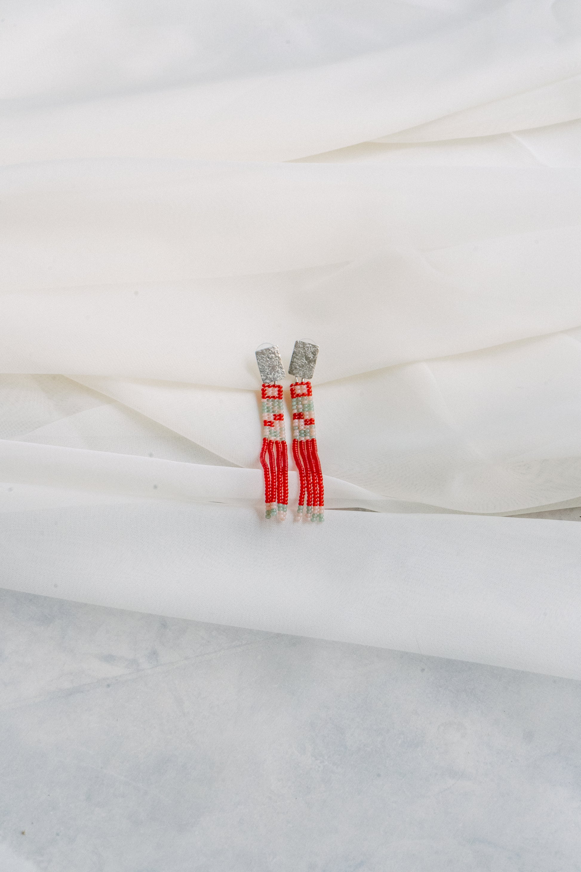 Com um design contemporâneo e seguindo as técnicas tradicionais de tecelagem sudamericana, estes brincos são leves e versáteis.