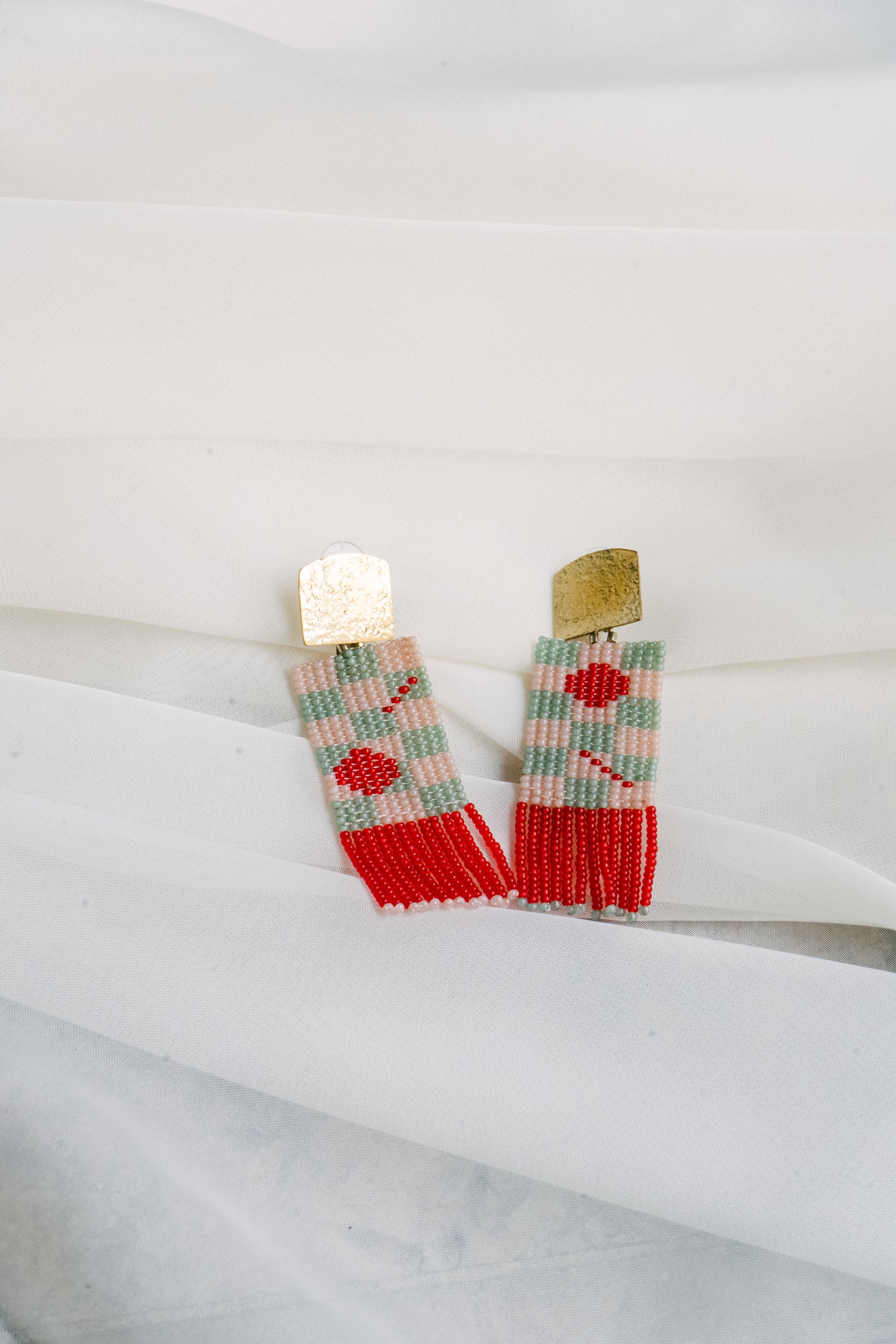 Com um design contemporâneo e seguindo as técnicas tradicionais de tecelagem sudamericana, estes brincos são leves e versáteis.