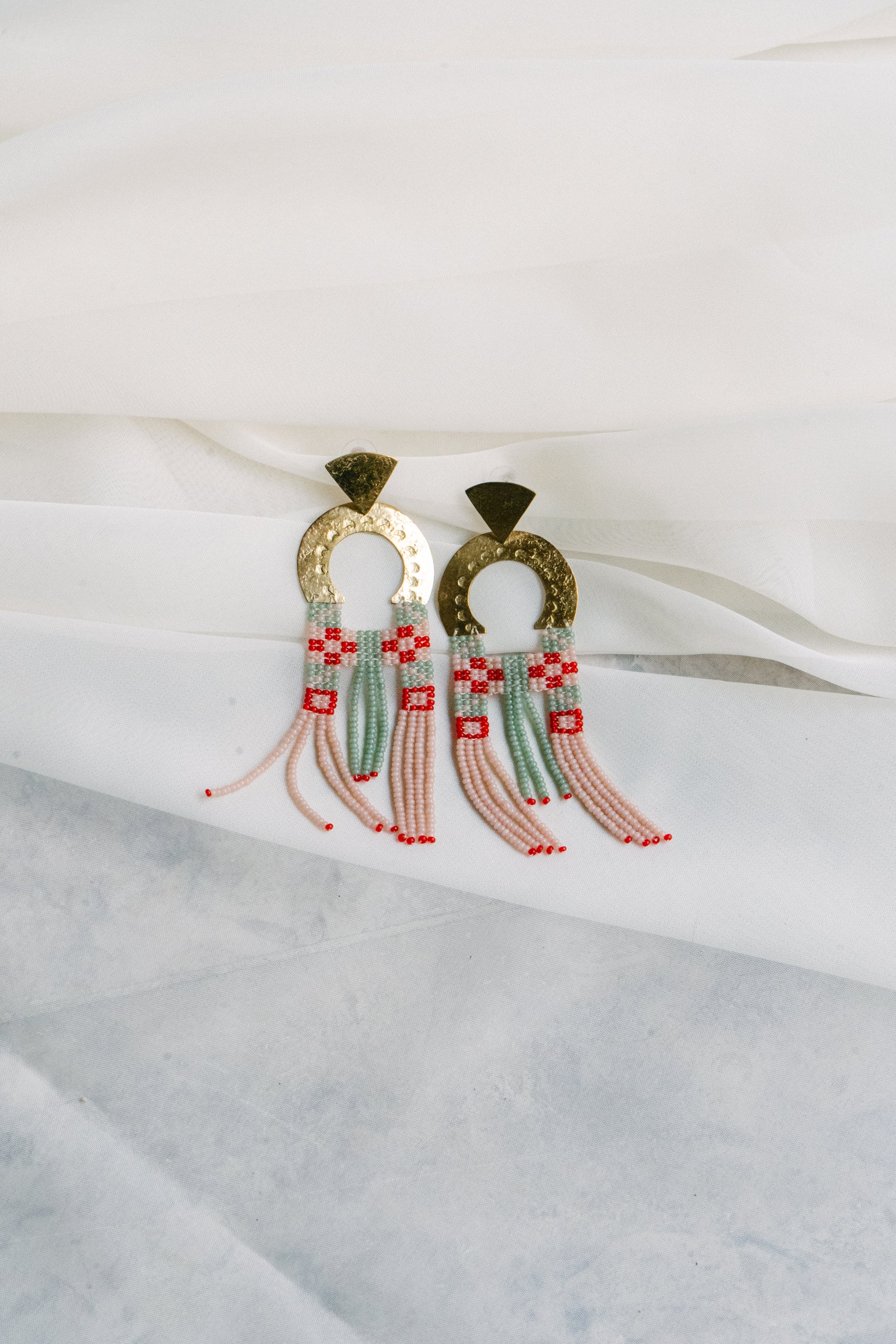 Com um design contemporâneo e seguindo as técnicas tradicionais de tecelagem sudamericana, estes brincos são uma obra étnica, imponentes e majestosos.